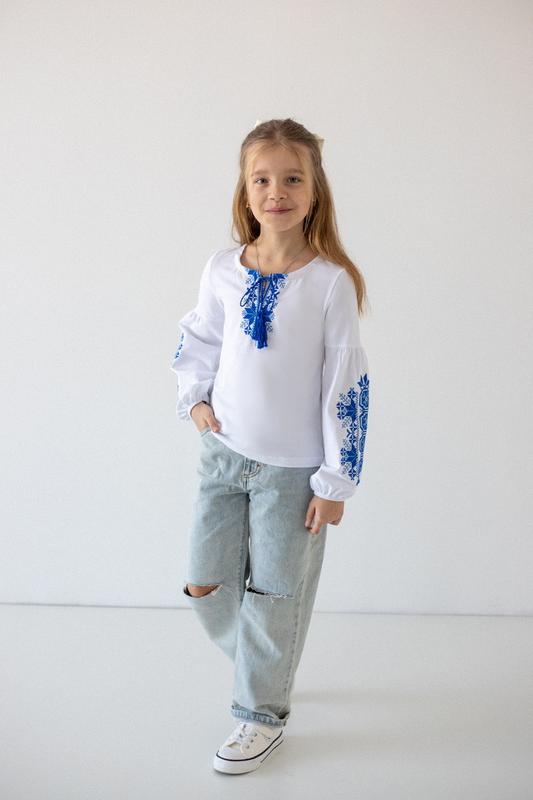 ⬇️Ціна залежить від розміру⬇️ 104р -299грн 110р -309грн 116р - 339грн 122р - 369грн 128р - 389грн 134р - 399грн 140р - 409грн 146р - 419грн 152р - 429грн 158р - 439грн 164р - 449грн Очаровательная вышиванка для девочек с пышными рукавами, выполненная из высококачественного полотна "Стрейч-кулир пинье " - эластичное и приятное к телу, красиво садится по фигуре. Изюминка данной модели - это интересный вышитый узор и объемные рукава снизу присобранные на резинке. Вышиванка отлично комбинируется с юбкой или брюками и станет дополнением любого праздничного или торжественного образа. Полотно: стрейч-кулир пенье Склад: 95% бавовна, 5% еластан Рекомендации по уходу: стирать при температуре не более 30°C. Допускается стирка в режиме "ручная" или "деликатное", вышивку гладить только по изнаночной стороне.