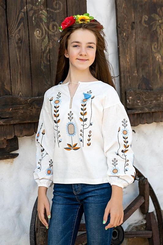 Розмір від 122-164см Вартість від 799грн і вище в залежності від розміру Виріб вільного крою поєднується із джинсами, спідницями, сарафанами. Модель із довгим рукавом має круглу горловину і зав'язується на шнурочок. Вишиванка виготовлена із льону. Матеріал зносостійкий, тому річ надовго збереже свій первинний вигляд. Прати виріб можна вручну або у машинці.