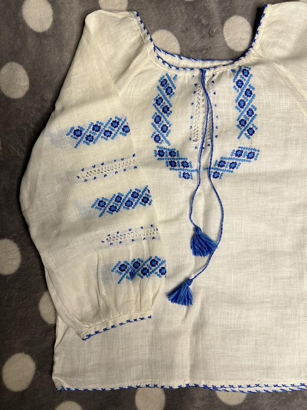 Дуже красива нова вишиванка на дівчинку. Купували у майстрині в Карпатах. Проскочили по розміру, залишилася новою. Всі заміри на фото. Це льон. У подарунок повʼязка на голову, що пасує за кольором.