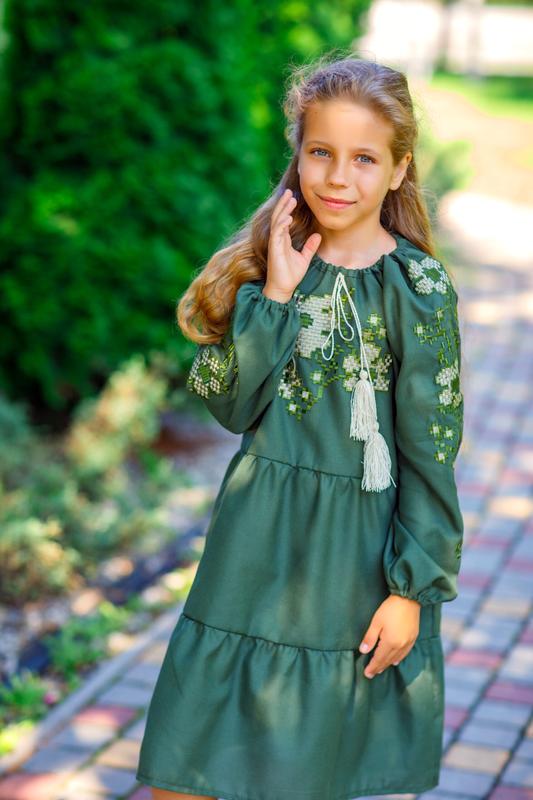Платье вышиванка для девочки хаки,
