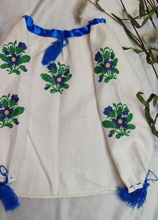 Вышитая блузка для девочки ◽Цена 450 грн ◽ Тканина: льон ◽Цвет: белый ◽Размер: 104-110 (4-5 лет) ◽Замеры: ПОГ 33,5 Длина 41,5 Длина рукава 39 🚨📍возможно изготовление по заказу