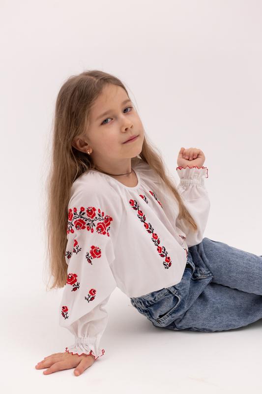Размеры: с 92 по 164 Традиционная рубашка для девочки Материал в 2-х вариантах: 1. Батист: волокно натурального хлопка, сама ткань тонкая, легкая, воздушная ткань. 2. Льон Вышивка традиционная, техника машина.