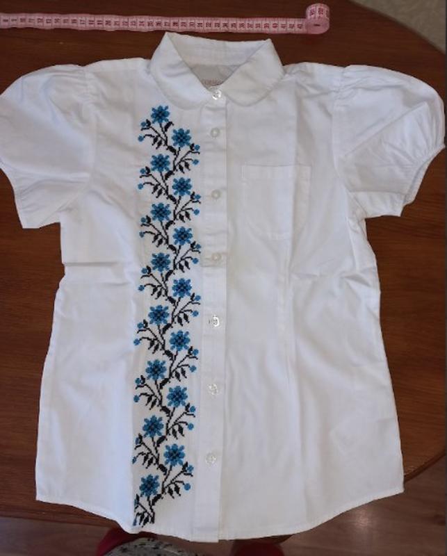 Вишиванка дитяча для дівчинки, з коротким рукавом. Мінімалістична, ніжна. • Довжина: 52-53 см • Ширина спинки (від шва до шва рукавів): 28,5 см На який вік, зріст – не зорієнтую. Діти різні, і краще орієнтуватися на конкретні заміри.