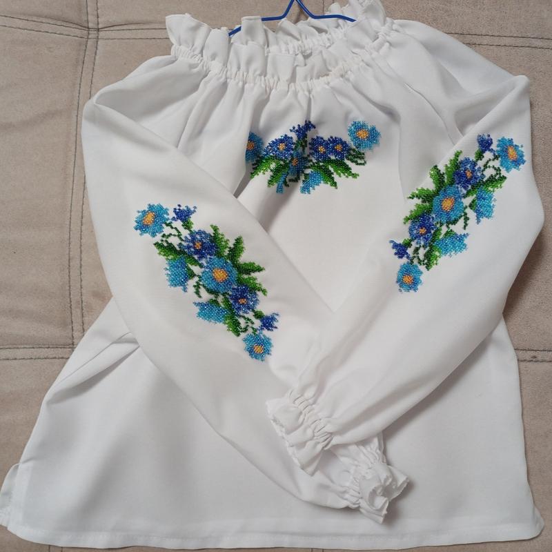 Вышиванка из бисера для девочки. Нова. Материал: габардин. Размеры: Длина 50 см Обхват 90 см Длина рукава 47 см. Пересылаю по любой почте.