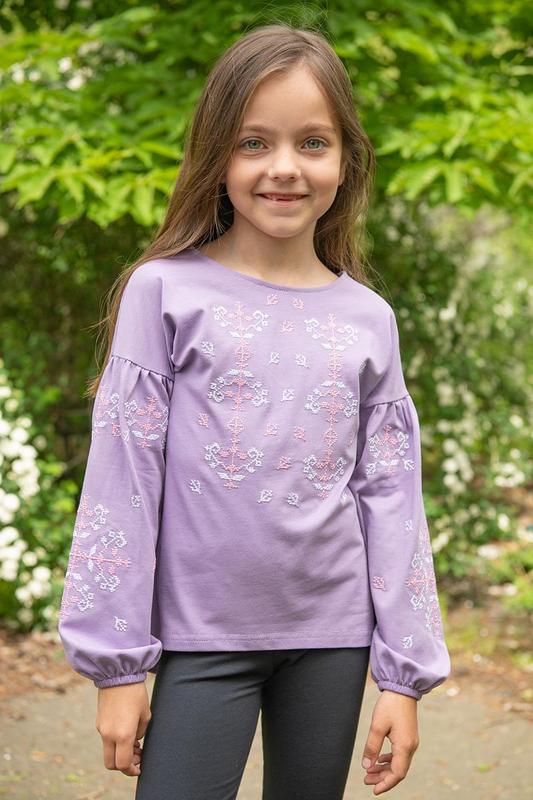 Вишиванка для дівчаток, бузкова ментоловий білий Матеріал- Фулікра Склад 95% бавовна + 5% лайкра, пеньє Зріст 110-140 Зріст 146-164 + 80 грн❗