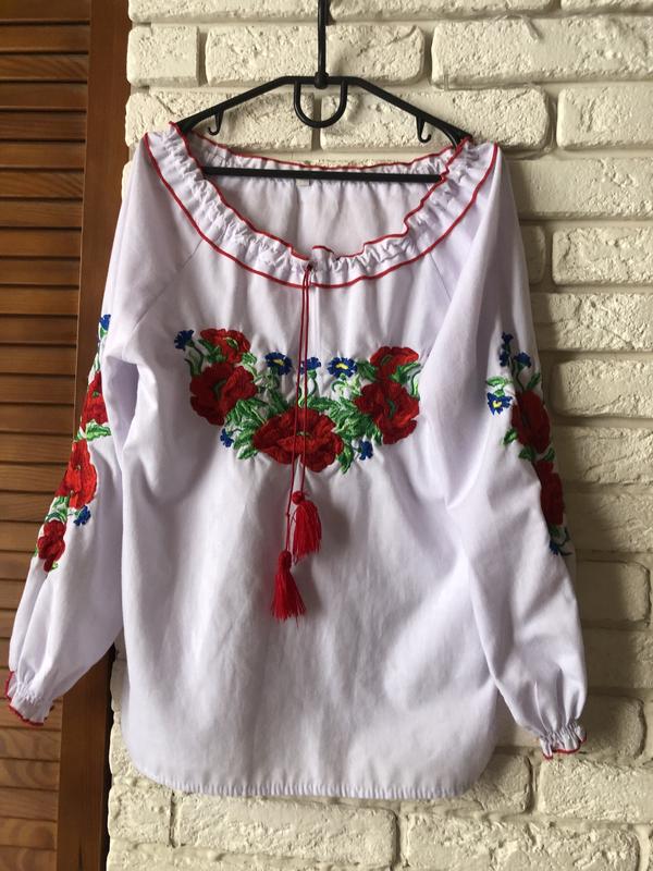 Вишиванка з білим полотном та вишитими квітами. 128 розмір