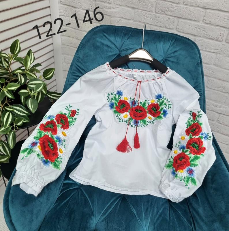 🥰ВИШИВАНОЧКА тканина поплін, чудова якість,справжня вишивка,не малюнок шнурочок робочий(можна стягнути) Горловина і манжети оброблені мереживом Рукавчик застібається на ґудзик РЕКОМЕНДУЮ 🎈140(1 шт)-довжина 53,пог 39,рукав 56 +-1 см