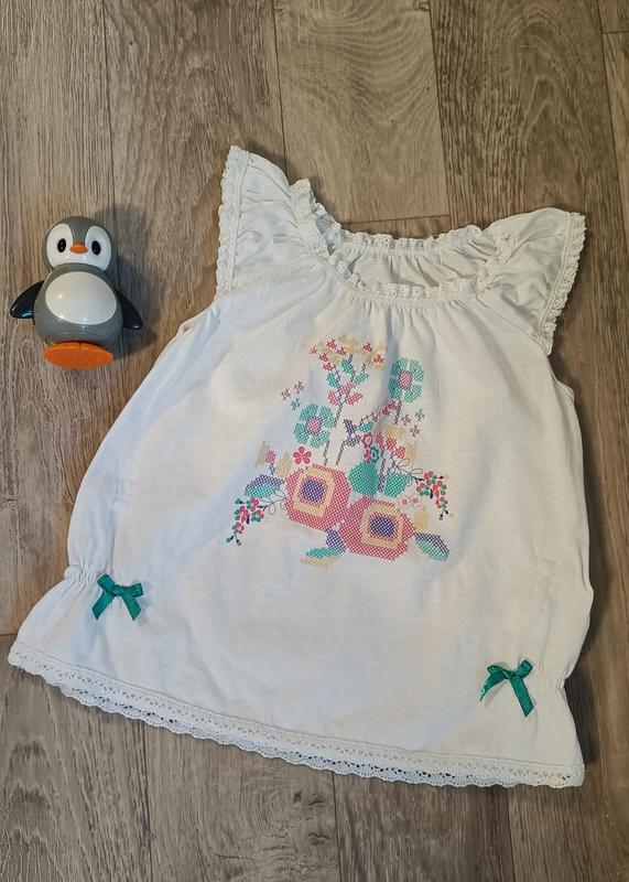 Футболка для маленьких україночок з імітацією вишивки, довжина 33см, приємна натуральна тканина, хороший стан. заміри на фото