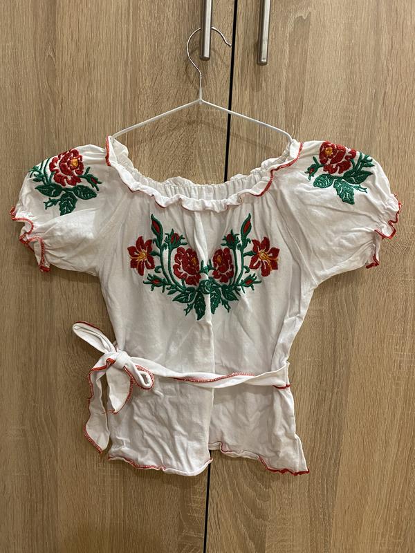 в ідеальному стані, вишивка яскрава та якісна, поясок пришитий до футболки (на фото видно) довжина 35 см, ширина півобхват талії 34 см. за додатковою інформацією звертайтесь в особисті