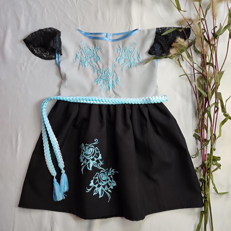Вышитое платье детское ◽Цена 580 грн ◽ Тканина: верх шифон, низ габардин ◽Цвет: верх серый, низ черный ◽Размер: 104-110 (4-5 лет) ◽Замеры: ПОГ 30,5 Длина 55 Длина рукава 11