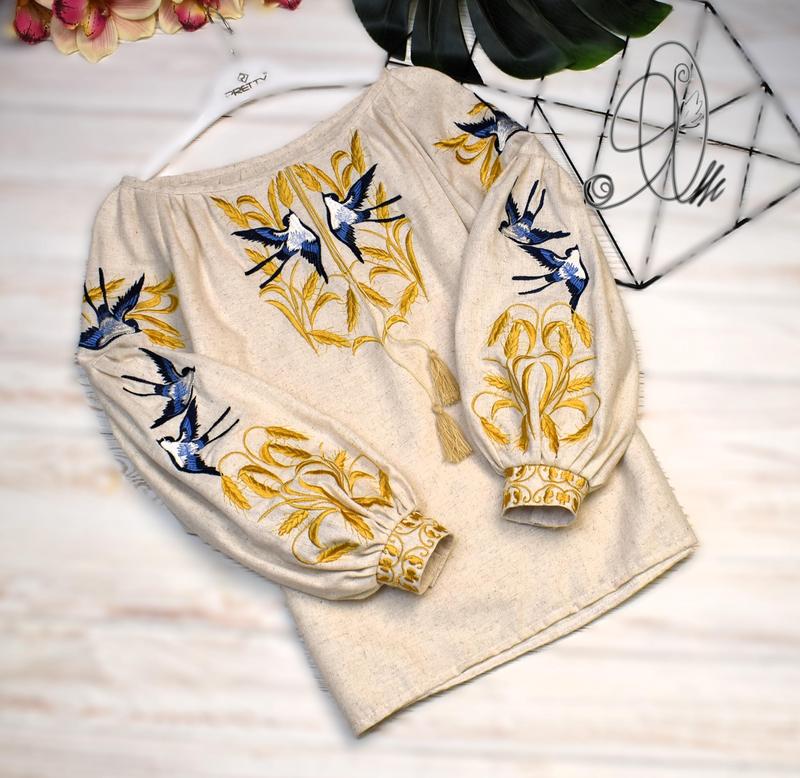 Вишиванка на дівчинку "синички" льон