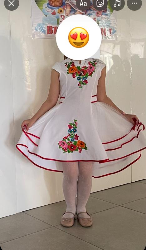 Бомбезне вишите плаття,с фатином и поясом ,який завʼязується позаду. По спині застібка на молнії. На зріст 128