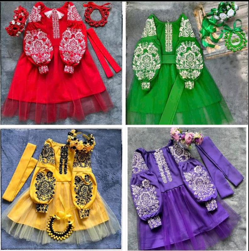 Платье вышитое вышиванка красная желтая зеленая фиолетовая Тканина габардин Размер 104-158 Есть в наличии много венчиков Отправка в день заказа