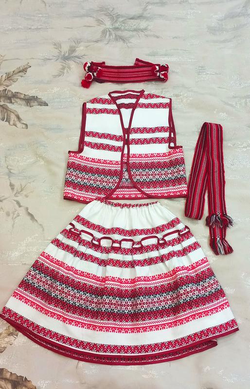 В комплекте жилет, юбка, пояс и лента голову, Длина юбки 40 см, длина жилета 36 см,