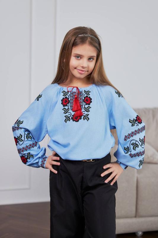 Голубая вышитая рубашка вышиванка детская блузка вышита красивая вышиванка