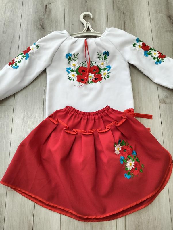 Костюм вишиванка для дівчинки 110-116 Заміри: Ог-70см. Рукав від шиї-43см.(йде три чверті) Довжина -40см. Довжина спіднички -40 см. Стан ідеальний, без дефектів. **********-Альона