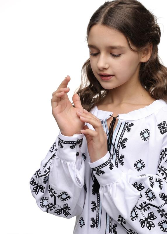 Матеріал: домоткане полотно Вишивка: традиційний полтавський орнамент Колір: біле полотно з витонченою білою вишивкою Деталі: вільний крій, акуратний виріз, декоративні зав’язки Розміри: 104-164