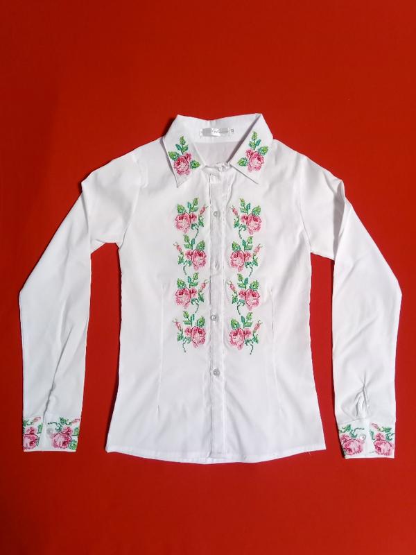Рубашка вышиванка на девочек 13 лет,95% хлопок, цвет белый