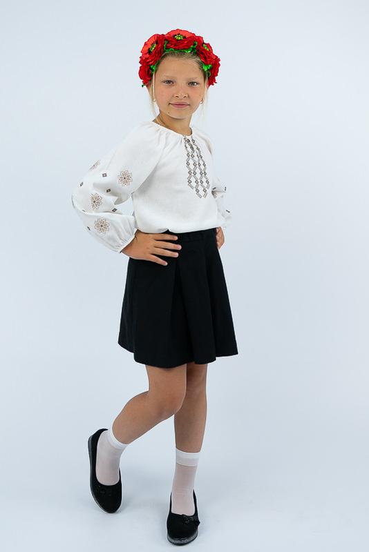 Вишиванка для дівчат молодшого шкільного віку - це чудовий вибір як для святкових подій, так і для щоденного носіння. Модель виконана з натурального льону. Це міцний матеріал, добре переносить температурні перепади та прання. Лляна тканина сприяє регулюванню процесів теплообміну - в жарку погоду одяг з льону охолоджує тіло, а в холодні дні, навпаки, зігріває людину і захищає її від впливу низької температури повітря. Льон виділяє підвищену зносостійкість, ступінь усадки при пранні.