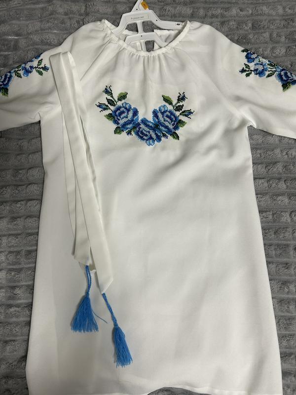 Дитяча вишита сукня бісером з паском. Дітям віком 5-6 років. Заміри сукні : Довжина сукні-69 см Ширина під руками -42 см Довжина рукава від плеча-43 см