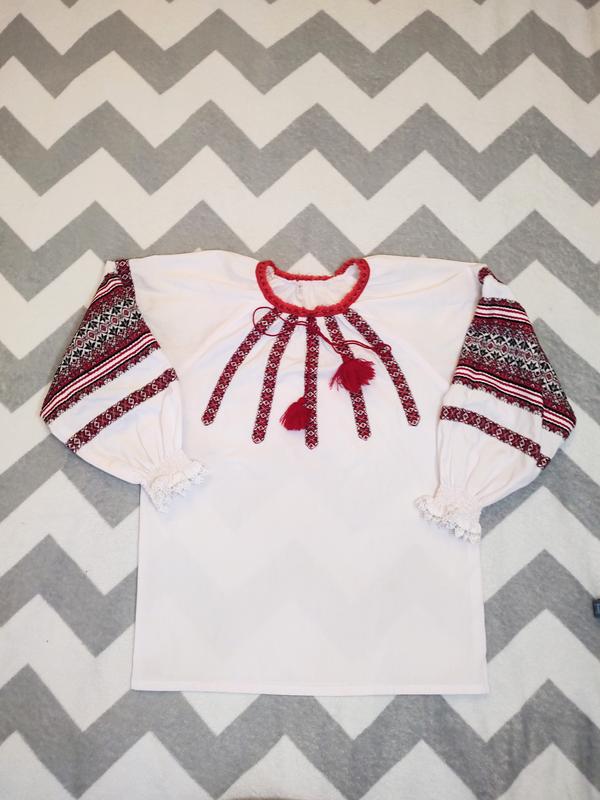 Вышитая рубашка для девочки. Размер указан 36, это где-то 128-140 см (ориентируйтесь по замерам). Стан идеален.