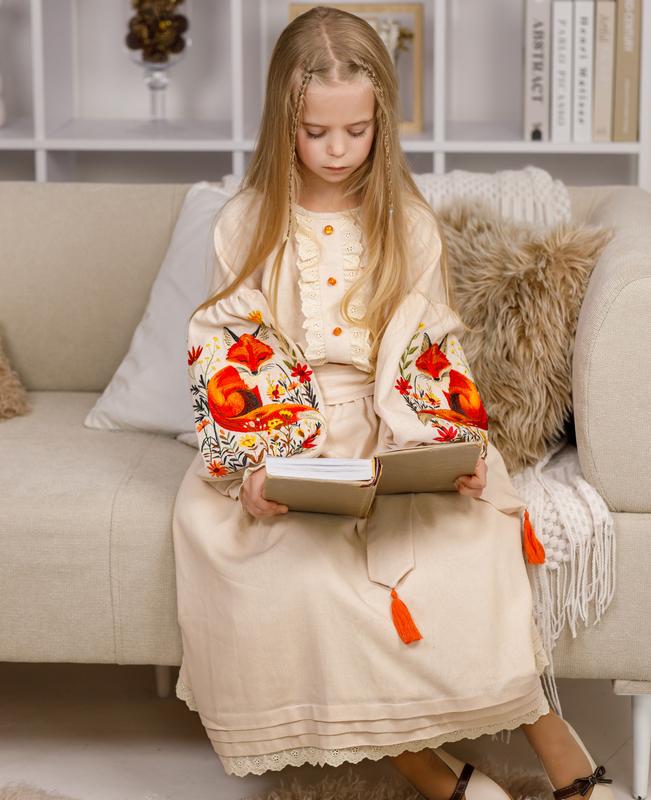 Вишита сукня для дівчинки з вишитими лисичками лише під замовлення ‼️‼️‼️ Машинна вишивка. Тканина: льон (70% льон, 30% бавовна). Натуральне мереживо