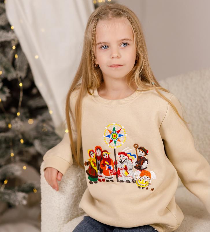 Світшот вишитий вертеп різдво вишивка флісова кофта вишита для дівчаток в садочок святкови...