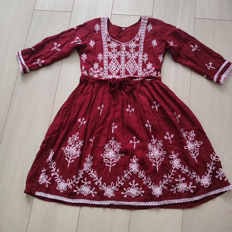 пропоную до уваги красиву ніжну вишиванку для дівчинки, прикрашена камінчиками які не відпадають . завязується по талії , квіти нашиті об'ємні , приємна до тіла. довжина 70 см