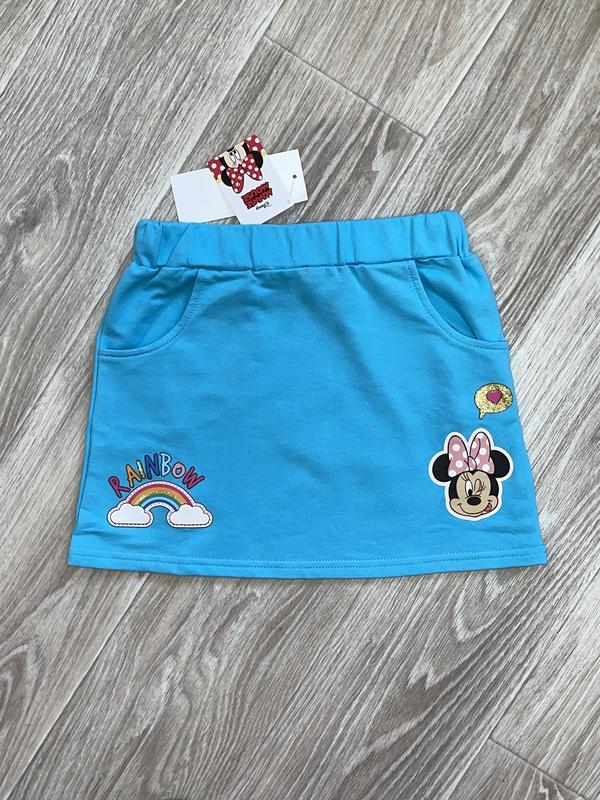 Спідниця трикотажна з Minnie Mouse Попереду 2 кишені На талії резинка добре тягнеться 🏷Disney 8 років Довжина 31. ПІТ 28