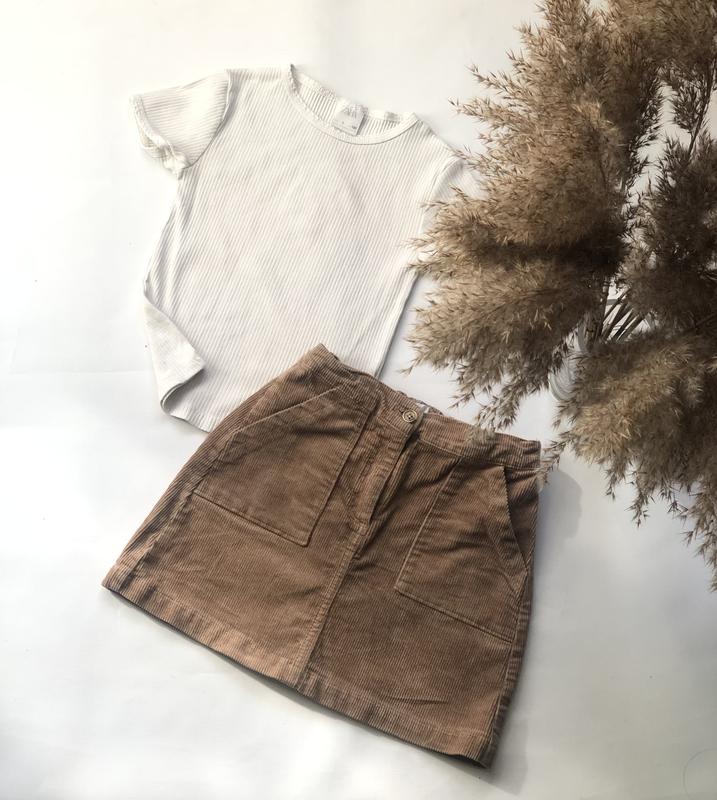 Вилветовая юбочка #hm ▪️8-9р 134р длж-32,пояс-28 ▪️цена 155грн Футболка #zara 7р/122р ▪️Цена 110грн