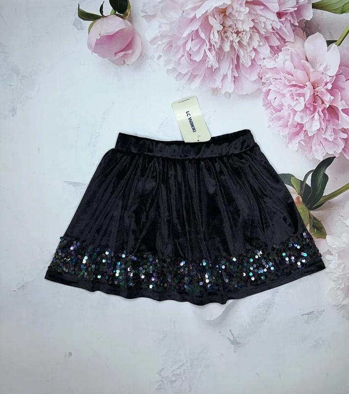 Спідниця з паєтками Верхній матеріал велюр Підкладка котон Нова 🏷️LC Waikiki 6-7 лет/116-122 Довжина 32. ПОТ 29