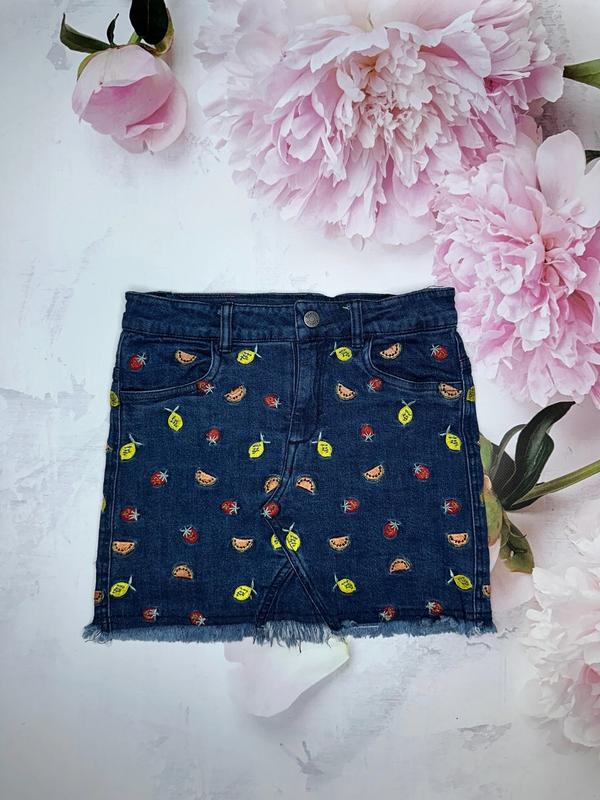 Джинсова спідничка з вишитим малюнком Спереду та ззаду кишені Є підкладка (котон) У талії затяжка регулюється Стан ідеалу 🏷️Jako 9 лет/134 Довжина 32. ПОТ 31