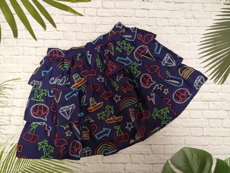 На этикетке указано на рост 140 см. Замеры в спокойном состоянии: длина 36 см, пояс-резинка 29 см. 100% полиэстер. Производство Индии. Состояние отличное.