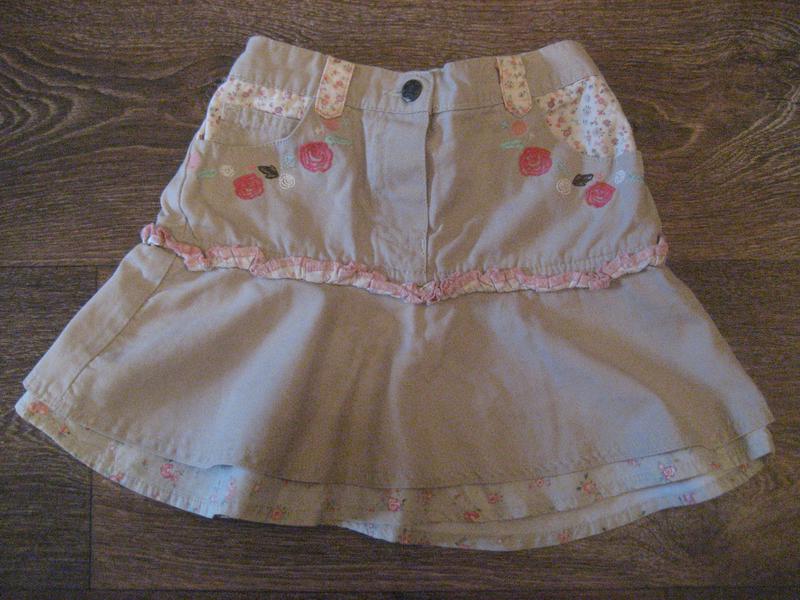 Бежева спідниця з подвійною оборкою. На кишенях вишивка.