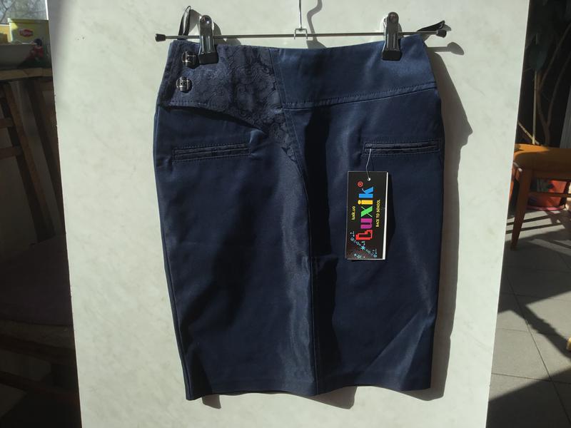Красива, пряма спідниця для дівчаток, відмінної якості, виробництво України, торгова марка Люксик.Є розміри на ріст-146,152,158. По боках спідниці виконана вишивка. Колір синій.