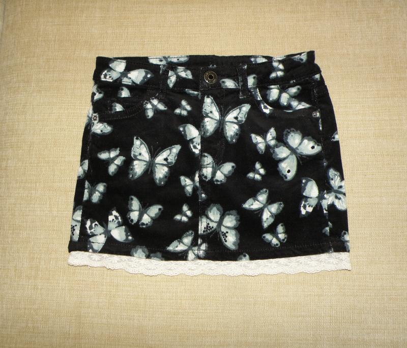 Стильна спідничка H&M на дівчинку, оригінал з офіційного сайту (Англія), б/в. Розмір 4-5 років (за розмірною сіткою на зріст 110 см). Склад: 98% бавовна, 2% еластан. М'який мікровельвет. В поясі утяжка-резинка для регулювання ОТ. Застібка - на кнопку та блискавку. Якість відмінна. Зроблена в Бангладеш. Стан відмінний, без дефектів. Ціна - 160 грн. Виміри: довжина - 26 см, ширина по поясу - 27,5 см.