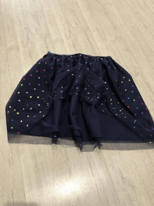 Юбка синяя с разноцветными блестящими сердечками,фатиновая Талия-27 Дл изд-38 Шир.внизу-73 Склад-100 % полиэстер