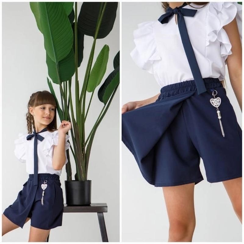 🧡Відправка 16-21.07🧡 Спідничка-шортики тканина костюмка є кишені прикраса в комплекті колір темно-синій Ціна 510 грн заміри:довжина/пояс 128-31/24 134-32/24 140-33/25 146-35/26 152-37/26 +-2см