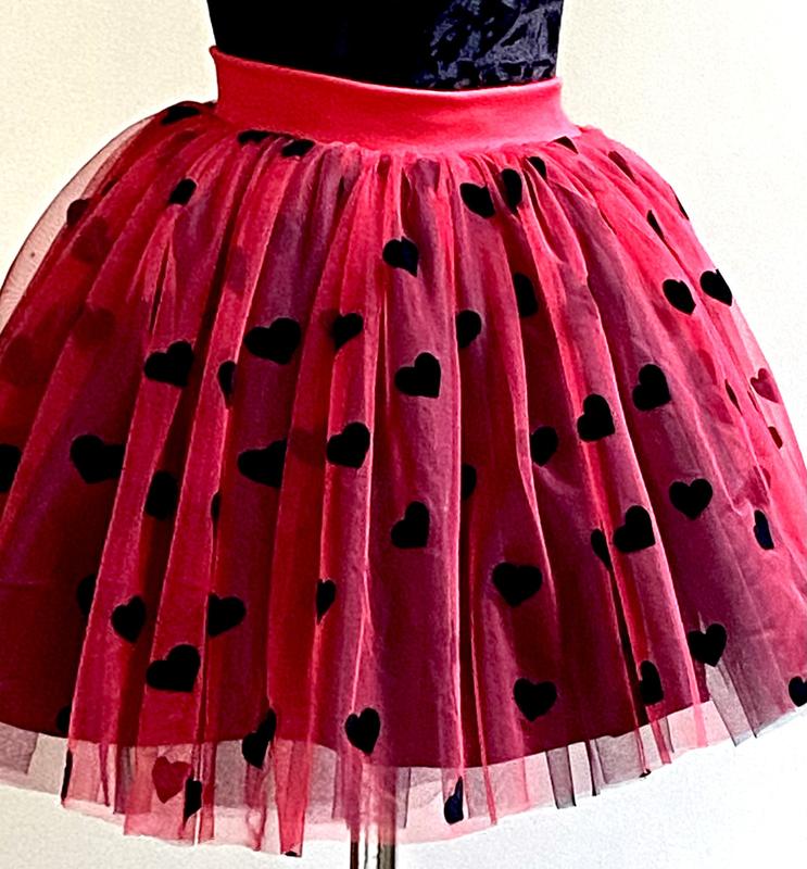 Ошатна, гарна, пишна спідничка для дівчинки. Підкладка — бавовна, верхні два шари — єврофатин. Наявність кольорів: 1. Однотонні — червона, чорна, малинова, ніжно-рожева, блакитна, салатова неонова. 2. Поєднання двох кольорів: - верхній шар єврофатину червоний, нижній шар чорний; - верхній шар єврофатину неоновий салатовий, нижній чорний; — верхній шар єврофатину малина, нижній чорний. Замовлення відповідно до зросту дитини — 22