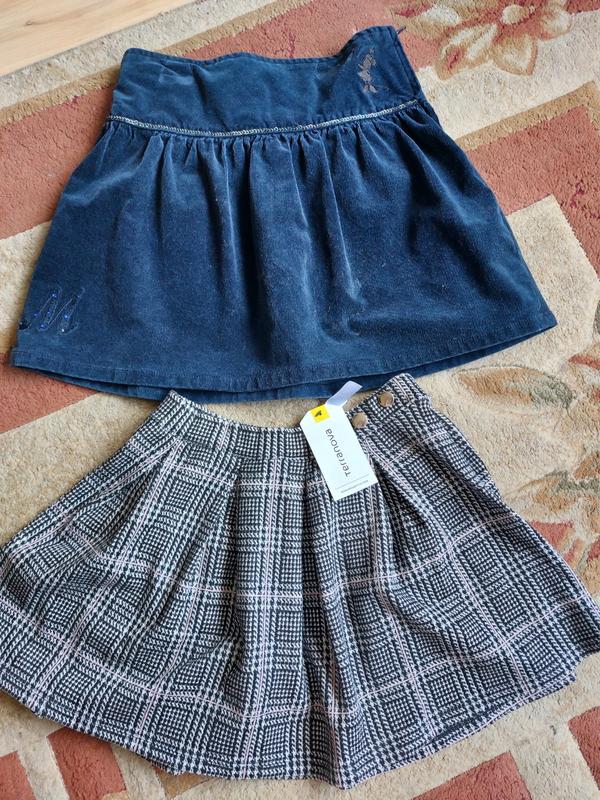 класненькі спіднички дівчинці на зріст 128-134 см синя мікровельвет, довжина 36см, в талії утяжка 32см, 100грн в клітинку, нова, Terranova, довжина 31,5см, талія на ризниці 28см, 150грн