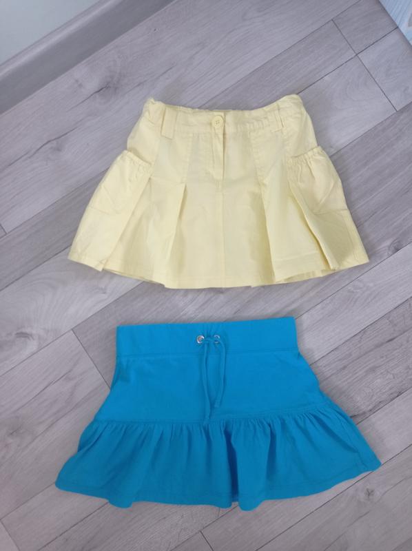 Продам дві спіднички за ціною однієї, вік 8-10 р. 100 котонові. Заміри синьої спіднички довжина 30 см, в поясі 30 см на резинці Заміри жовтої: Довжина 29,5 см, пояс 29 см, євроразинка, регулюється Доставка укр або нова пошта