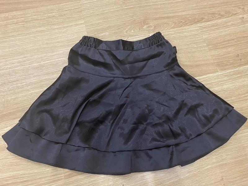 Чорна спідничка на дівчинку, застібається на гудзик і блискавку, ззаді декорована бантиком. Ширина по поясі -28см Довжина -40см