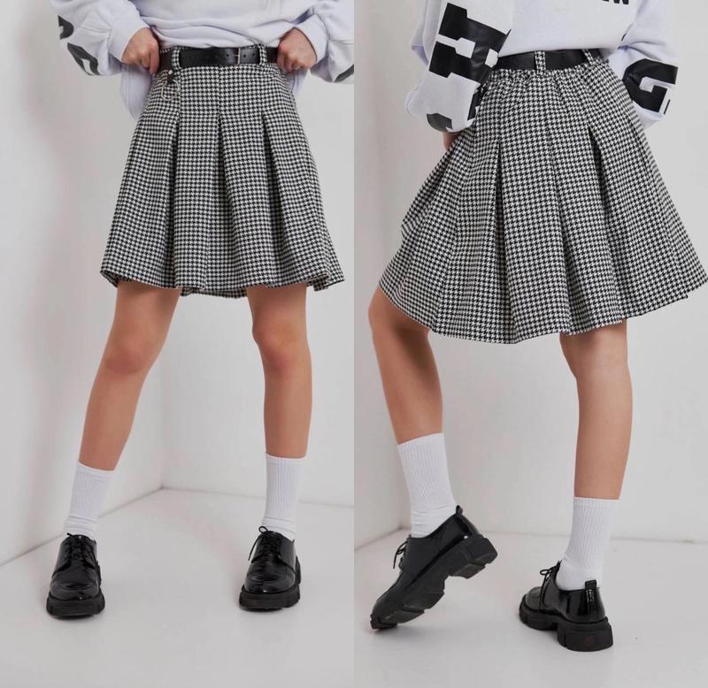 арт 2028 Хітова спідничка тканина гусячі лапки збоку на блискавці та ґудзику позаду у талії резинка У комплекті ремінь зріст/довжина/пот похибка +-2см 140-146/36/27-2шт 158-164/42/31-1шт 164-170/45/32-4шт
