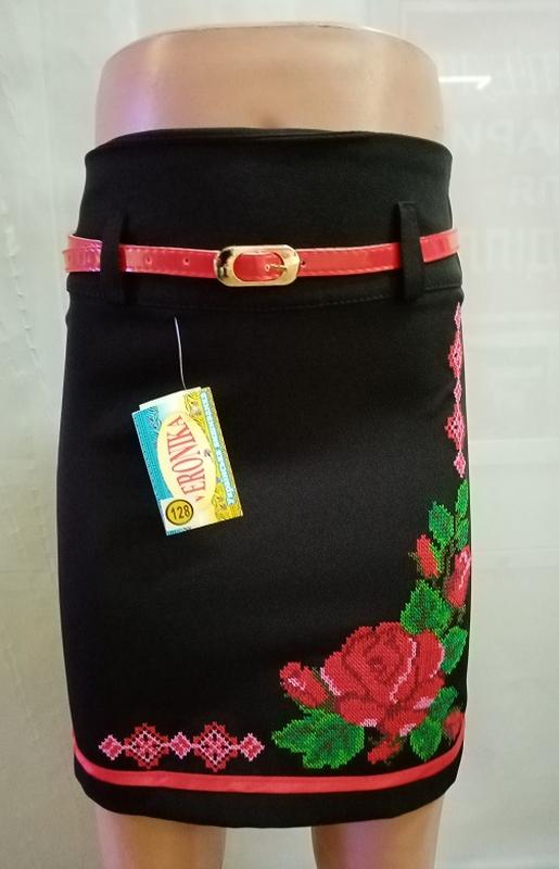 Нові, гарні, з вишивкою в національному стилі спідниці. Виробник Україна. Вишивка -хрестк, машинна. Склад тканини змішаний. Застібається на блискавку. До комплекту входить пасок! Розміри в наявності: (128) Зріст 122-128 продано (134) Зріст 128-134 продано (140) Зріст 134-140 продано (146) Зріст 140-146 Довжина 39 см. Пояс 30,5 см. Напів обхват стегон 39 см. (152) Зріст 146-152 Довжина 41 см. Пояс 31 см. Напів обхват стегон 39 см. (158) Зріст 152-158 Довжина 43,5 см. Пояс 33 см. Напів обхват стегон 44 см.