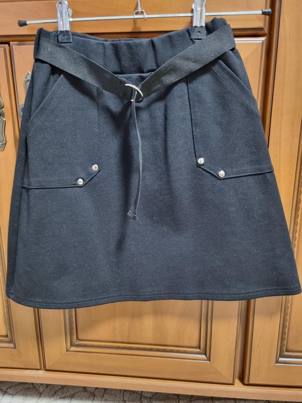 Юбка из плотного трикотажа, не кошлатится, не растягивается. Цвет в жизни чёрный, насыщенный. Поясочек только спереди, как украшение длина 40 см ширина 27см
