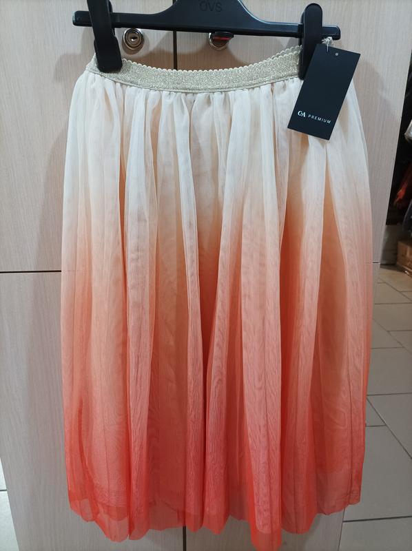Нова,якісна спідниця для дівчинки. Верх - два шари фатину,низ щільна підкладка кольору беж. Не просвічує. На поясі золотава резинка. Зріст 140 см(10 років): Довжина - 62 см ПОТ - 27 см,тягнеться до 37 см Доставка : Нова пошта Укрпошта
