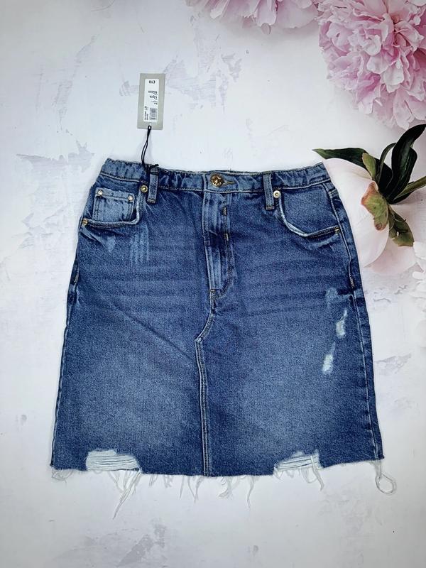 Джинсова спідниця з кишенями У талії є затяжка Нова 🏷️River Island 12 лет/152 Довжина 40. ПОТ 29