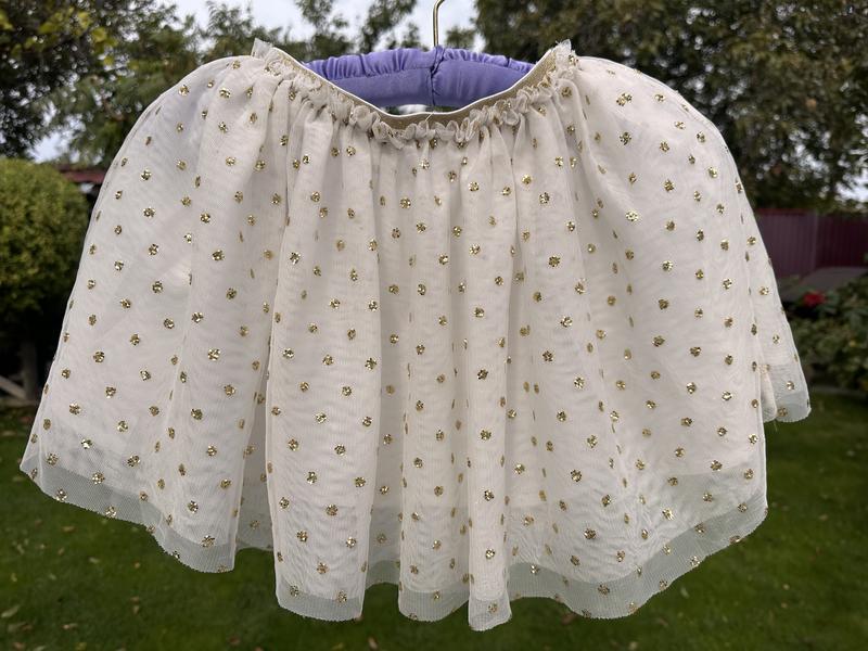 H&M, 4-6 років, зріст 110-116 см. Довжина 31-32 см, пот 25 см і в талії резиночка, дуже гарно тягнеться. Спереду є декілька затягувань, але особо в очі не кидаються ( на фото вказала). Загальний стан відмінний