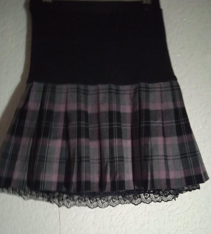 Акційна пропозиція! При купівлі двох речей - третя будь яка річ ( з ціною до 100грн) у подарунок................................................................................................................................... класна спідниця, зверху трикотаж. заміри довжина від пояса до низу 43 см , напівобхват талія 30-35 см тягнеться.