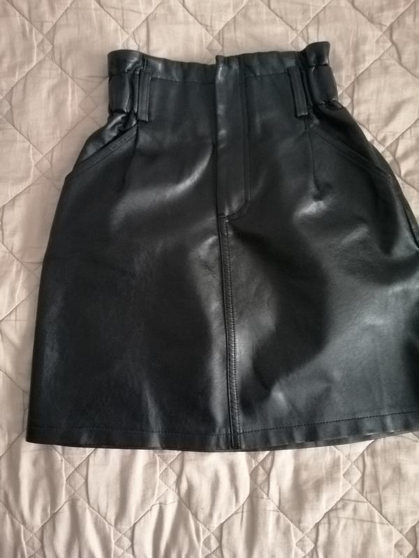 Спідничка зі штучної шкіри з кишенями. Розмір s. Довжина 43,5 см. Ширина в поясі 27 см.
